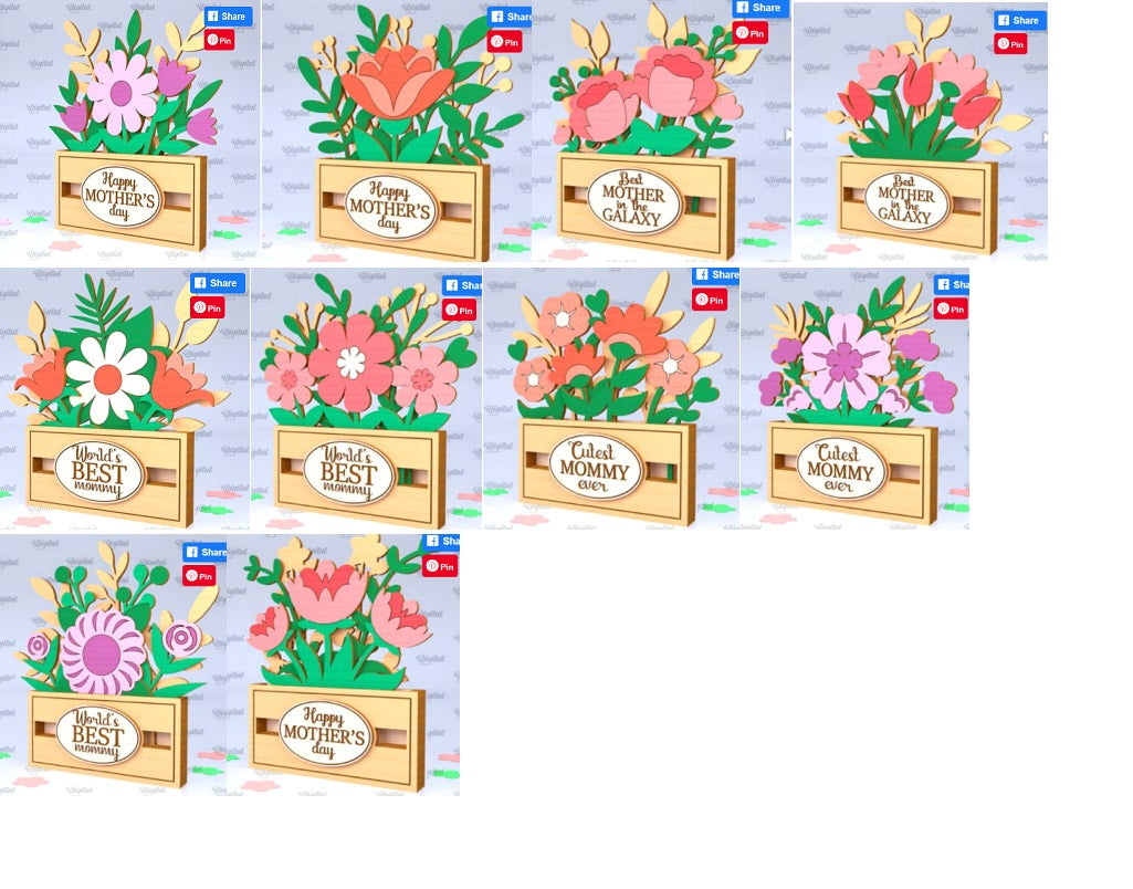 Give Mom a cute hand painted flower box. All flowers hand painted in a variety of colors. Three different Mother's Day greetings, with patterns to choose from.